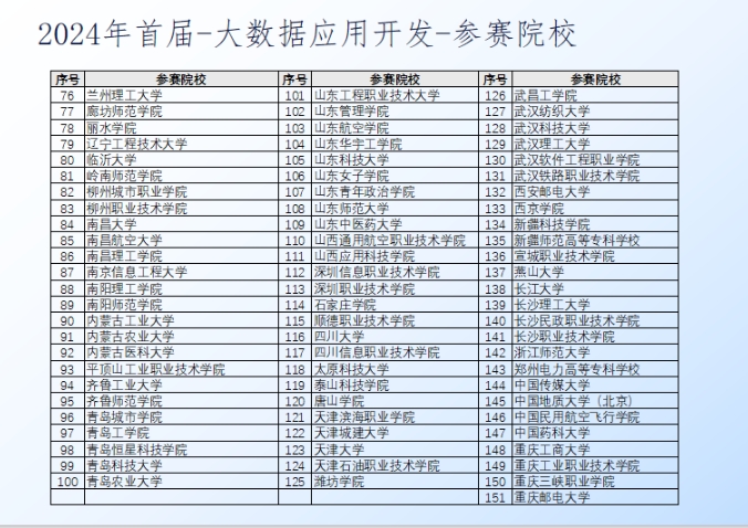 “睿抗機器人大賽 —— 信創大數據應用開發賽項”為教育部競賽白名單(A類賽),去年普開數據同樣作為技術支持單位,已經成功舉辦2024年賽項,25個省,110所高校,共1344支隊伍參與信創大數據應用開發賽項。