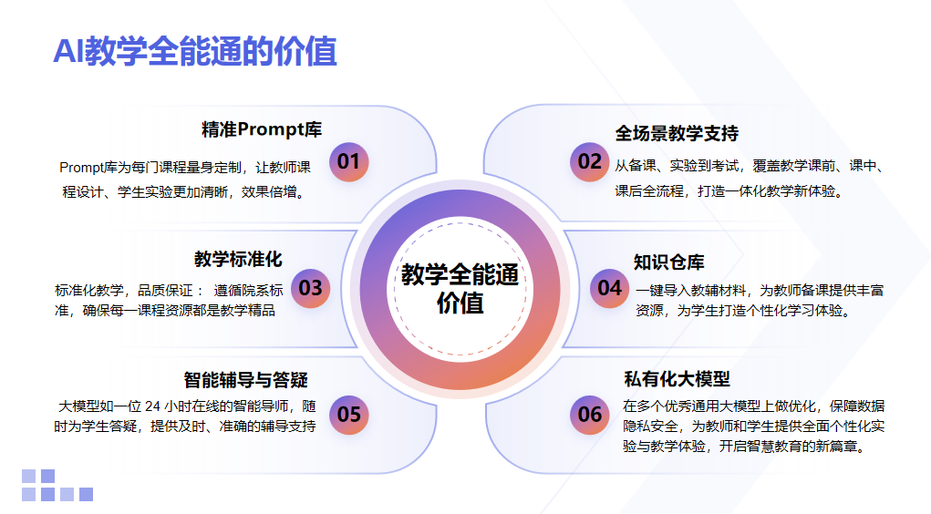 葉剛指出,人工智能通識教育的核心不僅在于知識傳授,更在于實踐能力與創新思維的培養,而大模型技術的發展為實驗實訓體系升級提供了關鍵支撐。方案圍繞 “理論 + 實踐 + 創新” 三位一體的培養目標,構建了從基礎實驗到綜合實訓、從虛擬仿真到真實場景的多層級實踐教學體系,通過大模型賦能的智能實訓平臺,實現教學內容動態更新、實訓過程智能指導、學習效果精準評估,有效解決了傳統實訓教學中資源不足、場景單一、師資依賴度高等問題。