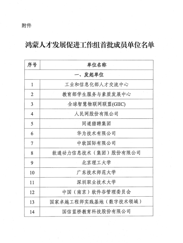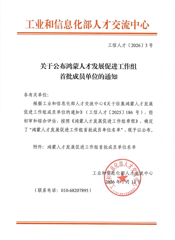 工信部公布鴻蒙人才發展促進工作組首批成員單位 http://m.babadeai.cn/10689/ Wed, 21 Jan 2026 03:05:28 +0000 http://m.babadeai.cn/?p=10689 2026 年 1 月 13 日,工信部人才交流中心發布通知,公布鴻蒙人才發展促進工作組首批成員單位,北京普開數據技術有限公司(即普開數據)以成員單位身份入選,一同入選的還有 14 家發起單位與 125 家成員單位,覆蓋政產學研用多領域,旨在構建鴻蒙人才生態,助力鴻蒙生態高質量發展。